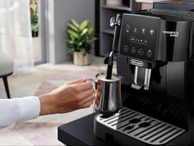 Plongez dans l’univers du café fraîchement moulu : De Longhi Magnifica Start vous offre tout ce dont vous avez besoin pour préparer vos boissons préférées à base d’expresso chez vous. Affichant une interface conviviale ainsi qu’une finition noire élégante, elle propose une sélection personnalisée de boissons d’une simple touche.